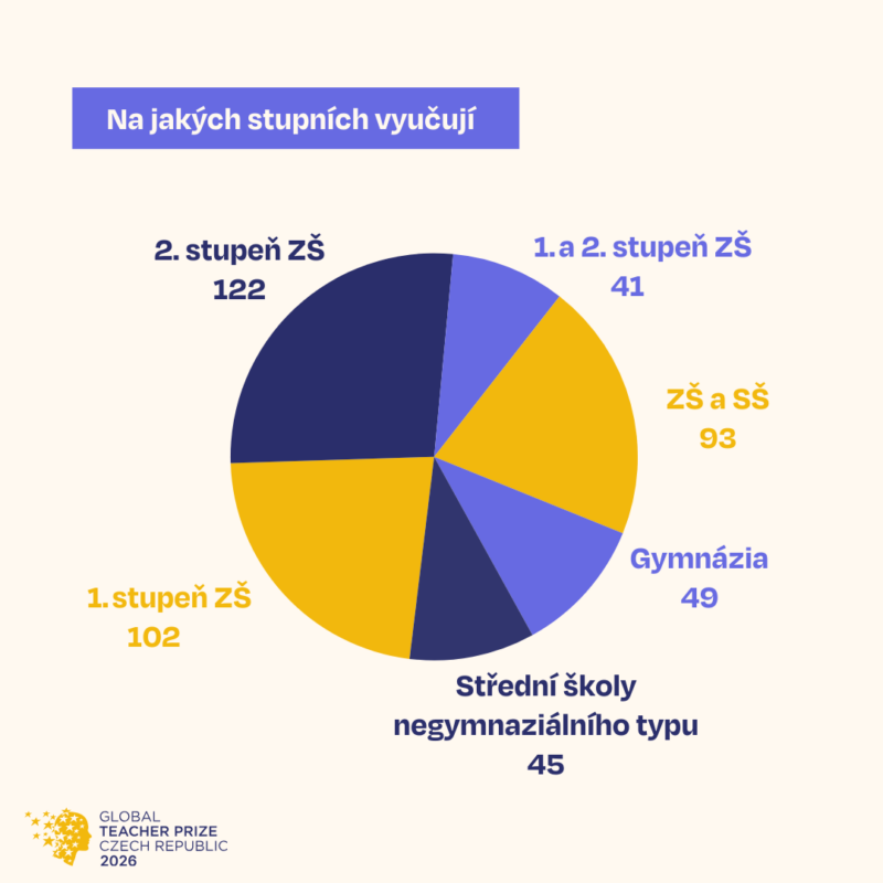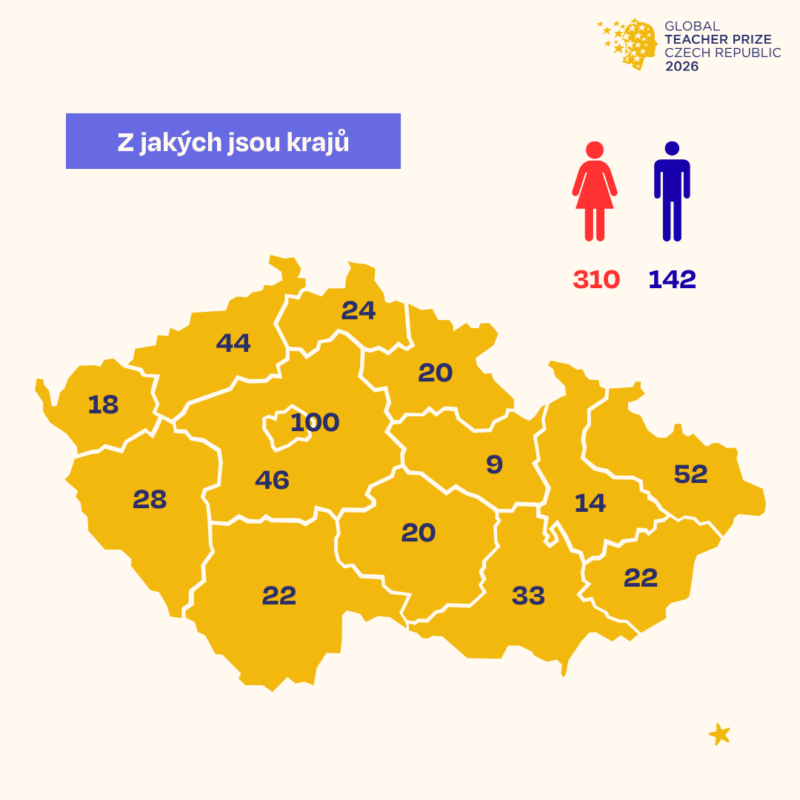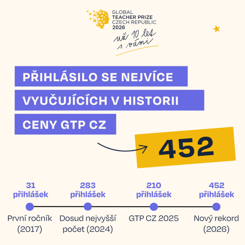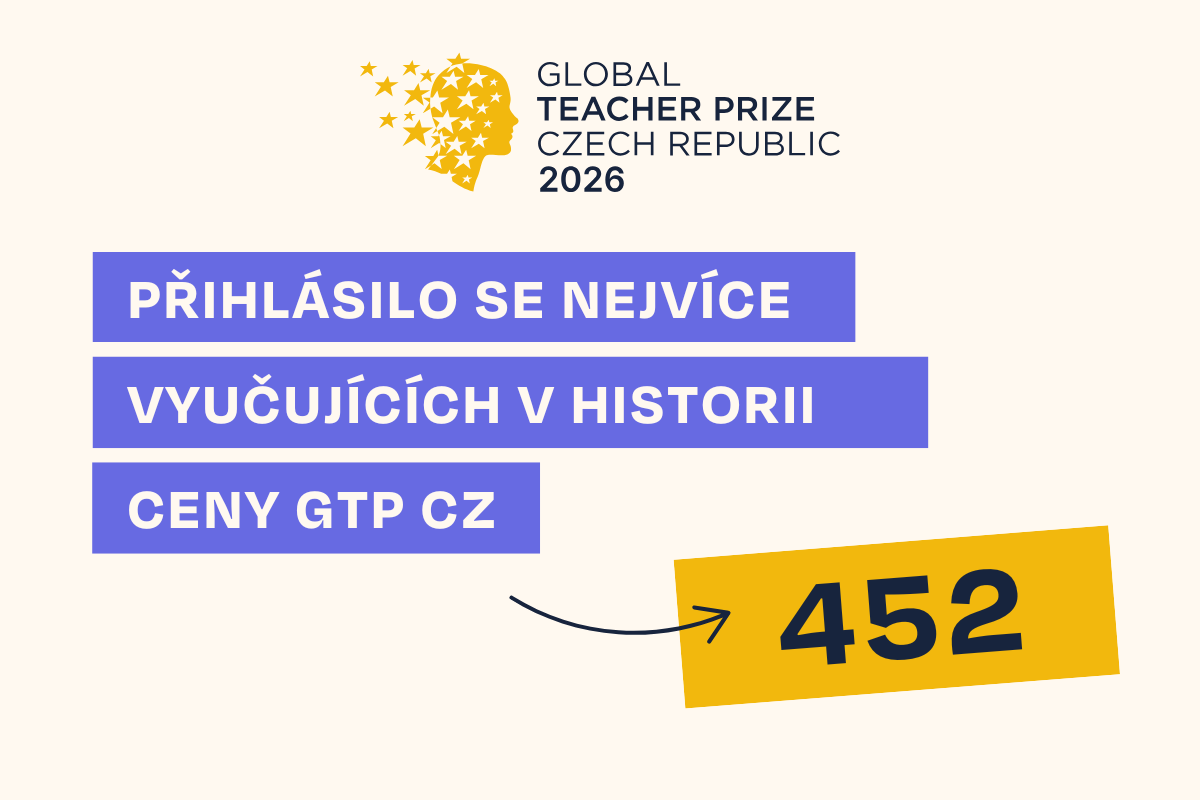 12. ledna 2026Do letošního ročníku odborné ceny Global Teacher Prize CZ pro učitele a učitelky ze ZŠ a SŠ se přihlásil rekordní počet vyučujících. Celkem jsme obdrželi 452 přihlášek, což je více než dvojnásobek oproti loňskému ročníku.